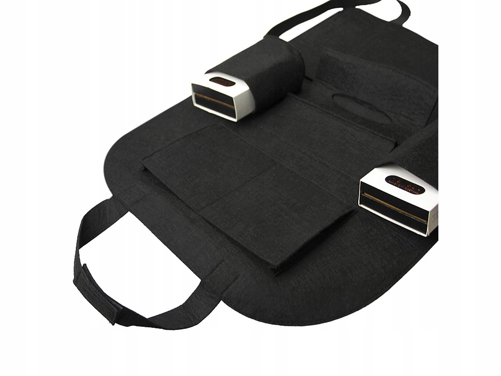 Sam organizer jest prosty w montażu, wystraczy rozpiąć rzep i zamocować go do zagłówka fotela. Dodatkowo organizer posiada paski zakończone haczykami które możemy zamontować pod spód fotela. Wykonany został z przyjemnego w dotyku filcu dzięki czemu będzie łatwy w utrzymaniu czystości.
