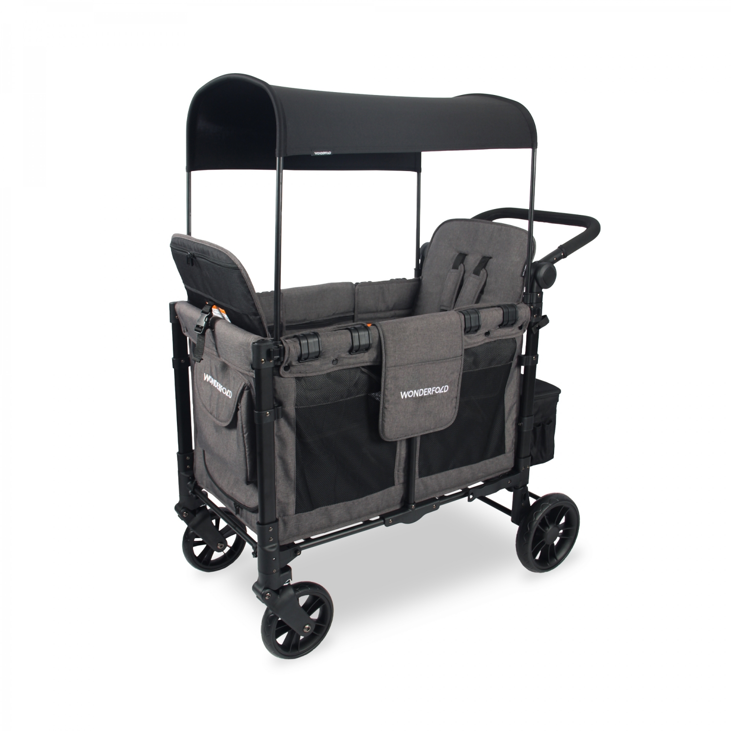 WonderFold L2 Double Stroller Wagon to nowoczesny, 2-osobowy wózek typu wagon, zaprojektowany z myślą o rodzinach, które potrzebują więcej przestrzeni, komfortu i wygody niż oferuje tradycyjny wózek. Dzięki innowacyjnej konstrukcji i praktycznym rozwiązaniom — takim jak boczne drzwi “hop-in / hop-out”, podwyższone siedziska z pasami 5-punktowymi, amortyzacja terenowa i przestronne wnętrze — każdy spacer staje się prosty i przyjemny.